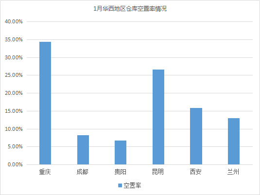 仓库空置率最高的城市为重庆、南昌、昆明,均超26%。与上月相比,昆明仓库空置率变化不大;重庆仓储市场长期处于供大于求状态,仓库空置率居高不下,延续上月上涨趋势;南昌仓库资源持续相对充足,仓库空置率长期处于高位,加之,1月份部分工厂陆续停工,导致仓库租赁需求有所下降,空置率有所上涨。