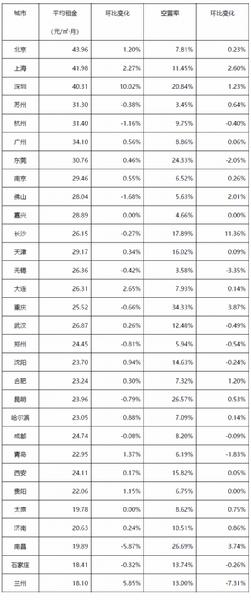 表:全国30个城市平均租金和空置率一览表