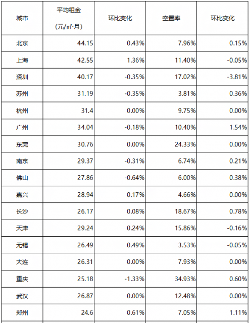表:全国30个城市平均租金和空置率一览表