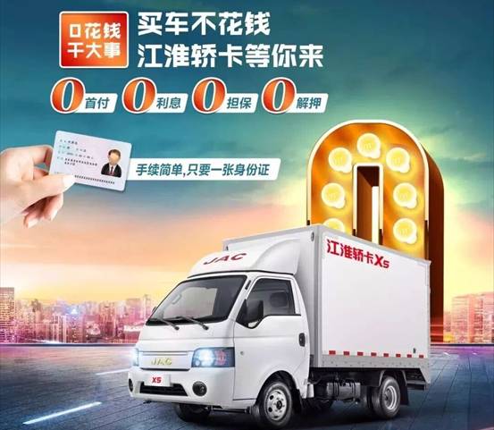 针对江淮轿卡X5车型,推出专属0首付、0利息、0担保、0解押金融方案,可直接享受厂家高额贴息补贴。只要一张本人身份证即可办理。