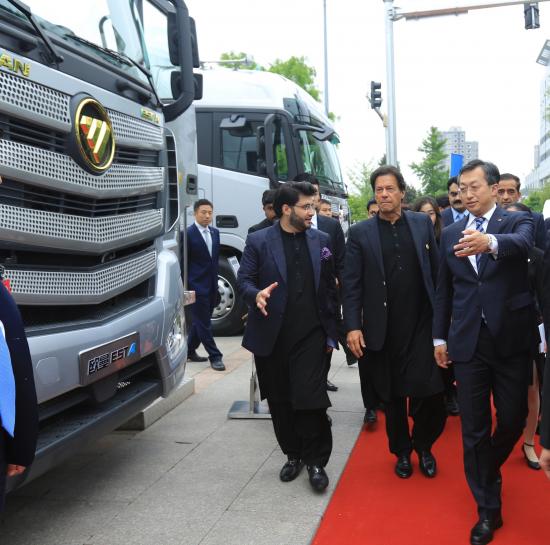 伊姆兰•汗总理表示:“中巴经济走廊”创造了大量的投资机会。在干线物流运输上,福田汽车可以为“中巴经济走廊”物流运输提供帮助。尤其是通过建立合资项目,引入智能化高水平商用车,利用福田汽车的先进技术和产品,可以推动“中巴经济走廊”物流运输的全面提速。针对瓜达尔港,福田汽车的港口牵引车能为港口物流提供高效率的解决方案。“总理更亲自提出,希望福田汽车先进的工程用车为即将动工的5000套保障房提供工程服务。