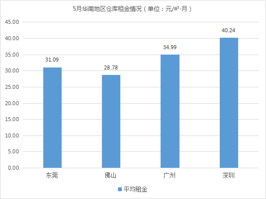 仓库空置率最低的城市为佛山、苏州,均低于3%。相较4月,两个城市仓库空置率波动不大,仓储市场基本保持平稳。
