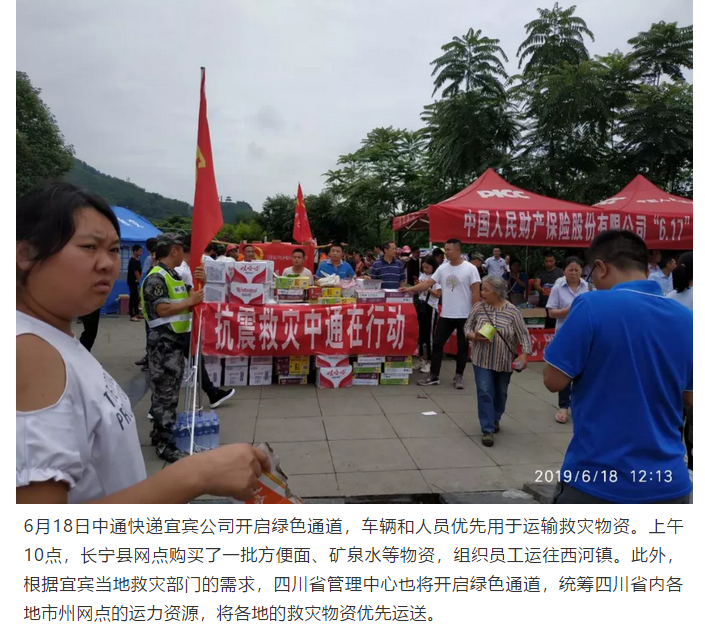 宜宾地震后 邮政、顺丰、三通一达、百世都做了什么