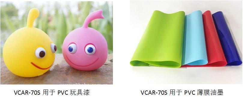 VCAR-70S乳液具有较高的硬度,优异的附着力和耐水性,一般用于塑胶涂料底漆,特别适用于PVC玩具漆,具有良好的抗回粘性。此外,该款产品还可以用于水性油墨,对PVC、纸张等基材附着力好,具有优异的耐划伤、耐盐水性及耐擦洗性。