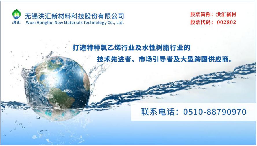 无锡洪汇新材料科技股份有限公司成立于2001年,主要从事氯乙烯-醋酸乙烯共聚树脂和氯乙烯共聚乳液及其改性水性系列产品的研发、制造和销售;依托强大的研发能力和生产经营能力,已形成了高性能的氯醋二元系列、羧基三元系列、羟基三元系列及氯乙烯共聚乳液及其改性水性系列等数十个牌号产品,公司现有氯醋树脂设计年产能10万吨、水性工业涂料基料设计年产能6万吨,系国内行业领先企业。公司于2016年6月在深圳证券交易所(股票代码:002802)成功上市。
