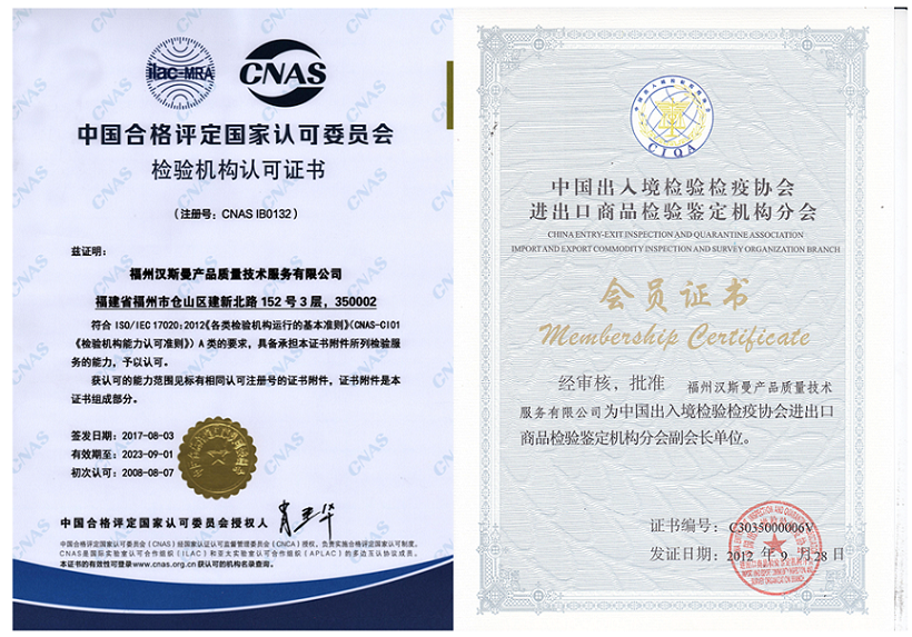 品质把控作为产品的核心,是一个系统性工程,但是重点的监管一定是在源头、在供应端。控源头、控品质、控服务,一直是质量服务行业的追求。成立于2003年的汉斯曼集团(HQTS)深耕第三方质检近20年,是亚洲地区历史悠久、规模宏大的第三方检验、检测质量服务机构。拥有中国合格评定国家认可委员会CNAS关于检查机构ISO17020和检测机构ISO17025的认可证书、检验检测机构计量认可证书CMA,国际检验机构联盟IFIA资质证书,以及作为“中国出入境检验检疫协会进出口商品检验鉴定机构分会副会长单位“,并被国家质检总局认可。