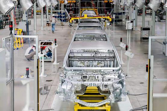 在智能化生产制造方面,工厂的自动化程度达到领先水平。焊装车间拥有98台日本发那科机器人,自动化率达100%;涂装车间拥有46台涂胶、喷涂机器人;冲压车间内两条大型全自动高速冲压连续生产线,具备ADC一键换模及ATC一键换端拾器功能;总装车间的SPS+AGV自动输送系统,自动上线率达70%。同时,工厂通过APS(高级计划排程)系统、MES(制造执行系统)等系统的应用,实现了生产计划协同、创造过程管控、质量管理、设备管理、供应链协调和信息采集与设备集成。