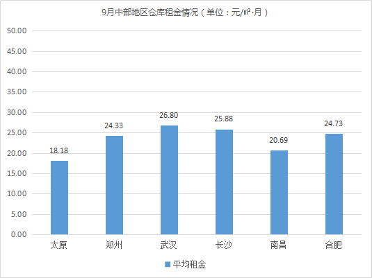 受仓储设施条件、地理位置等影响,南昌、石家庄、太原仓库租金水平仍旧较低,均低于21元/㎡·月。相较8月,南昌、太原仓库租金波动不大,市场保持稳定;石家庄因市区三环内不再规划新建大型仓储设施,同时2019年1月起三环内全天禁止中型、重型载货汽车驶入,部分企业正逐步向周边区县转移,三环外仓库租赁需求增加,石家庄仓库平均租金自3月起持续上涨,9月延续上涨趋势,涨幅为1.20%。