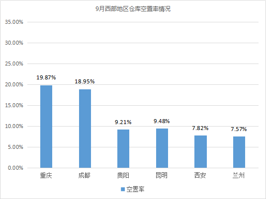 相较8月,成都安博青白江物流园(5.1万㎡)、丰树青白江物流园(11.7万㎡)新建仓储项目竣工交付,拉动当地仓库空置率上升幅度较大,升幅为6.65%。