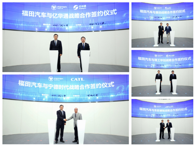 【福田汽车与宁德时代、奥动、亿华通、理工华创、东软睿驰举行合作伙伴战略签约仪式】