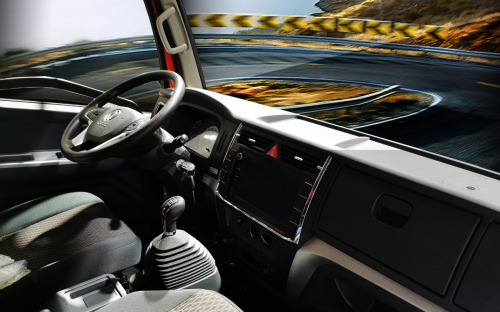 从舒适性来讲,即将发布的东风轻卡新一代产品,各项指标均向乘用车看齐。前排乘坐空间大幅度加宽,腿部可以随意伸展;座椅包裹性更强更舒适;多媒体、影音娱乐系统、定速巡航、倒车影像等丰富配置进一步提升了日常驾驶的舒适性。