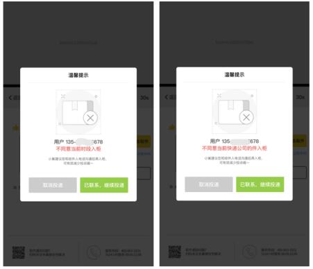 如果用户设置了同意,那么安心使用丰巢代收、保管服务即可,如果设置了某些时段或者快递快递公司不同意入柜,那么快递员在下次派件时会弹出提示,必须先联系收件人: