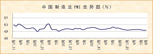 中国物流与采购联合会、国家统计局服务业调查中心发布的2015年9月份中国制造业采购经理指数(PMI)为49.8%,较上月上升0.1个百分点。该指数最近4个月以来首次出现小幅回升。12个分项指数中,只有5个指数略有下降,其余均有所上扬,特别是新订单指数上升较为明显,站上50%扩张和收缩的分界线。综合来看,制造业PMI指数弱势表现有改变,走势企稳回升,显示淡季影响衰减,稳增长政策措施效应进一步显现,经济运行呈现缓中趋稳积极变化。